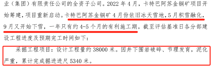 然而,矿区天气恶劣,能否保证完成300天生产存疑。评估报告显示,矿区属北温带大陆性山地气候,冬长夏短,温差大。积雪期180天(11月初至4月底),积雪深度50至100厘米。
