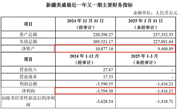 界面新闻发现,若以2025年3月31日为评估基准日,则增值率将更高,达1,749.43%。截至一季度末,公司总资产23.74亿元,总负债22.79亿元,净资产为9,460.89万元。