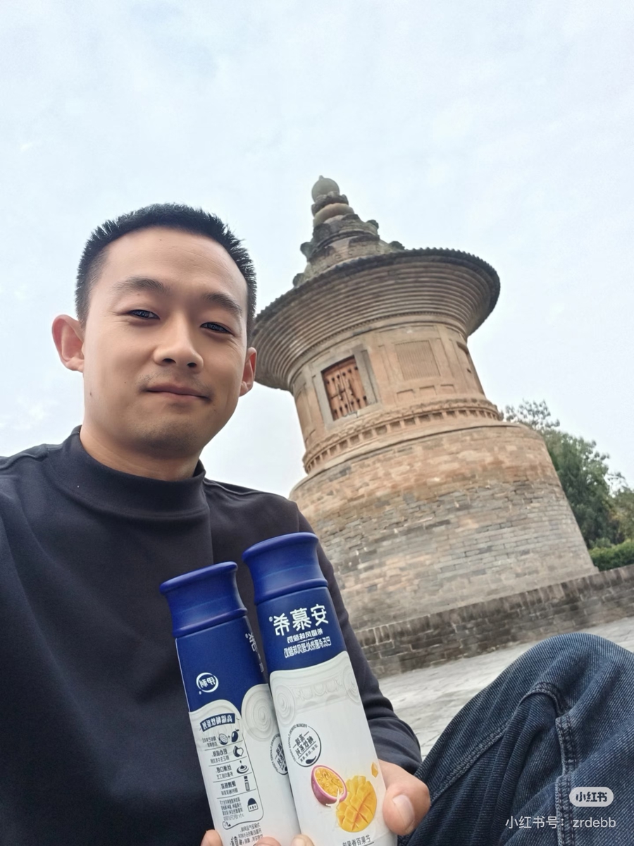 赵波手捧游客“投喂”的酸奶(来源:小红书账号“孤独的守塔人”)