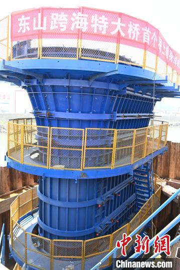 同日,作业团队完成了东山跨海特大桥的首个海上桥墩施工。中新网记者张金川摄