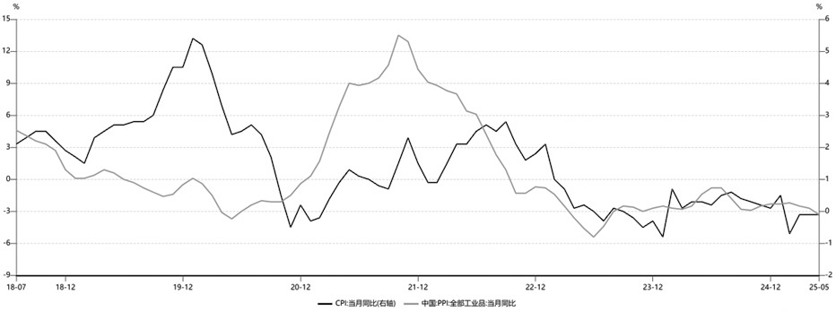 总体来说,5月国内宏观数据整体平稳,但经济复苏动能仍待增强。国内经济表现出较强的韧性,工业生产强劲,消费保持较高增速。但当前物价指数上行乏力,出口增速下降,制约了名义GDP的增长。5月CPI同比下降0.1%,预期降0.2%,前值降0.1%。国家统计局表示,5月份CPI略有下降,核心CPI同比涨幅扩大,CPI环比由涨转降主要受能源价格下降影响。PPI同比下降3.3%,预期降3.2%,前值降2.7%。物价指数低迷是当前企业盈利增速放缓的主要原因,需要供需两端进一步加大政策支持力度。进入6月,原油等大宗商品价格上涨,预计PPI跌幅将有所收窄。