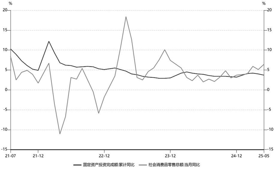 数据显示,5月份,全国规模以上工业增加值同比增长5.8%,环比增长0.61%。社会消费品零售总额41326亿元,同比增长6.4%,比上月加快1.3个百分点。消费品以旧换新政策持续显效,限额以上单位家用电器和音像器材类、通信器材类、文化办公用品类、家具类商品零售额分别增长53.0%、33.0%、30.5%、25.6%。1—5月份,全国固定资产投资(不含农户)191947亿元,同比增长3.7%;扣除房地产开发投资,全国固定资产投资增长7.7%。分领域看,基础设施投资同比增长5.6%,制造业投资增长8.5%,房地产开发投资下降10.7%。1—5月,全国新建商品房销售面积35315万平方米,同比下降2.9%;新建商品房销售额34091亿元,下降3.8%。1—5月房地产销售面积和销售额增速环比有所回落,但房地产市场回稳向好的长期趋势未改。预计年内房地产市场的跌幅将持续收窄,房地产对宏观经济的整体拖累将进一步减轻。